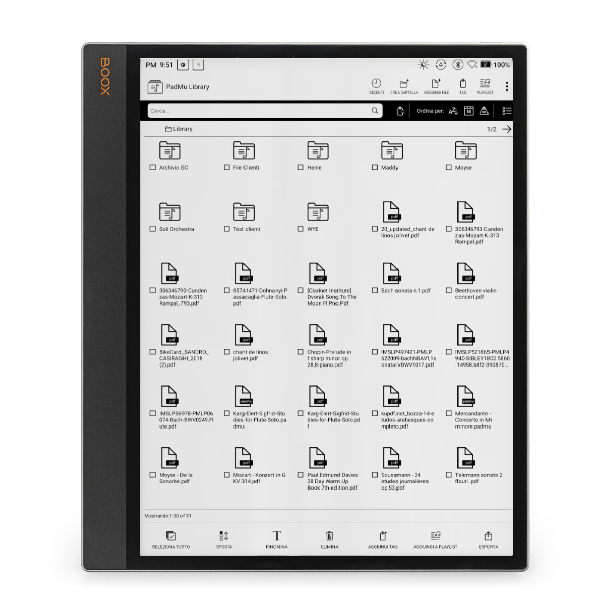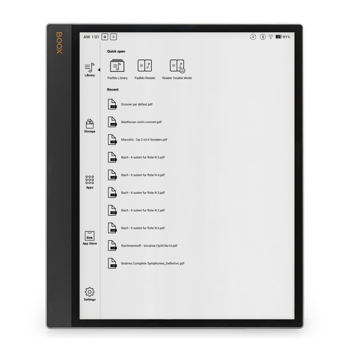 PadMu beyond offering a latest generation eReader tablet, that is always evolving and equipped with the best computing power available, offers a wide range of applications dedicated to its users. Music scores catalogue handling, constant updates and manual writing on scores are possible thanks to the software environment integrated into our devices.