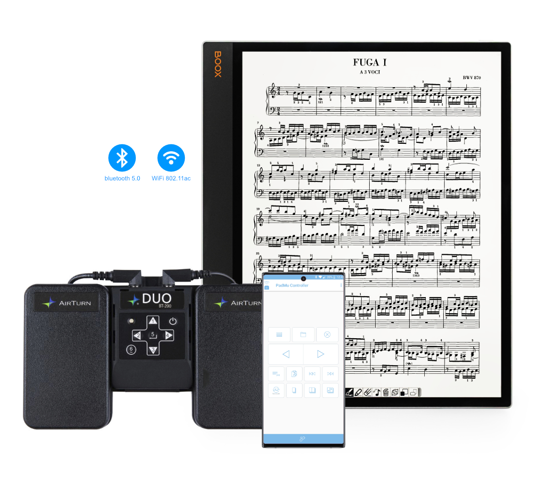 By purchasing two PadMu devices you can take advantage of two screens for reading and practising your music.